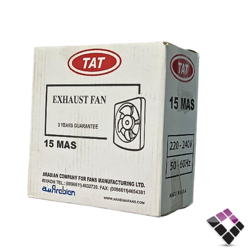 مروحة شفط TAT سعودي بلاستيك مربعة شفرات خلفية حديد موديل KDK مقاس 20×20 رقم 15MAS