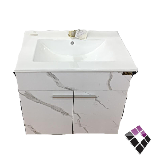 مغسلة معلقة PLOTO صيني دولاب المنيوم + بديل الخشب plywood لون بيج رخامي + حوض خزف أبيض 60CM + مراية LED رقم/PL-452-3-60