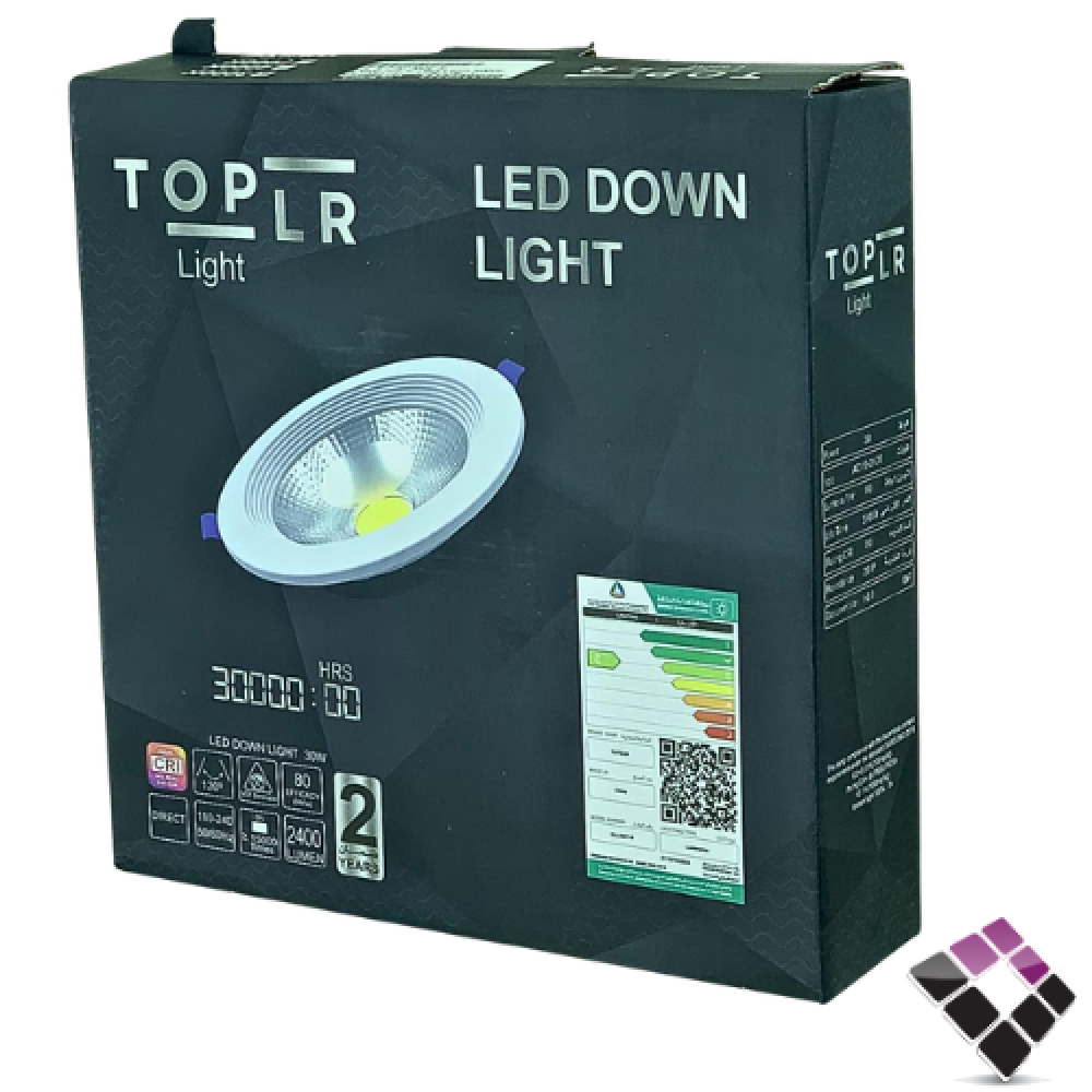 كشاف LED سبوت داخلي 8"× 20 سم TOPLR موديل كوب COB إضاءة 3000K أصفر جرم أبيض 30W رقم