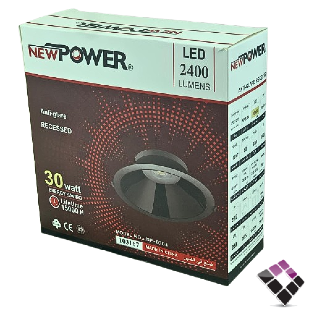 كشاف داخلي LED مع مانع توهج NEW POWER إضاءة 4000K كريمي جرم خارجي أسود داخلي أسود مقاس 8"×30W رقم