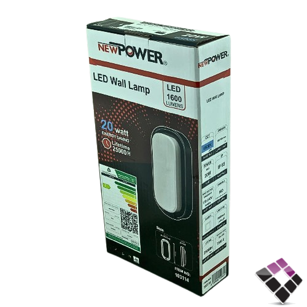 ابلك جداري لطش خارجي LED بيضاوي سادة كبير NEW POWER جرم أسود اضاءة أبيض 20W رقم 103114