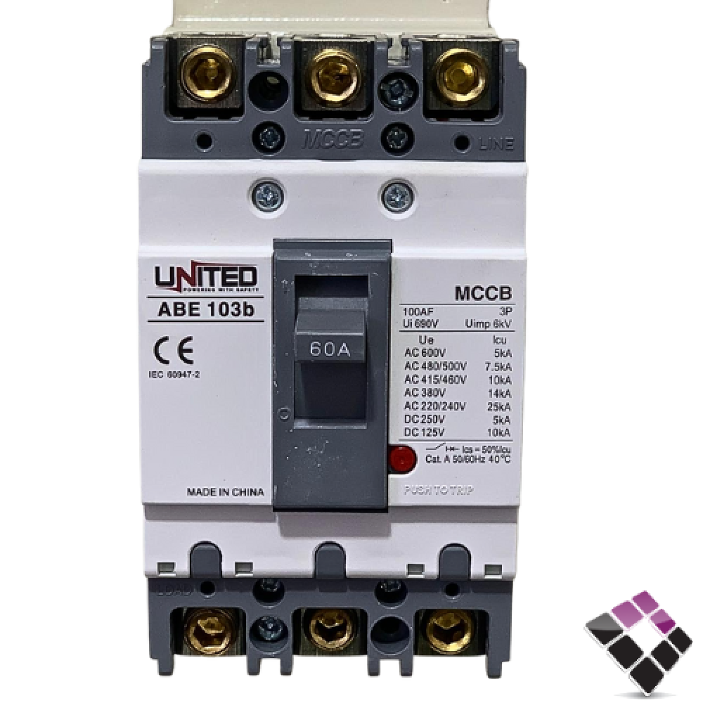 قاطع بالعلبة يونايتد UNITED جرم سعودي قاطع DEVICO كوري MCCB حساس داخلي غاطس 60 أمبير