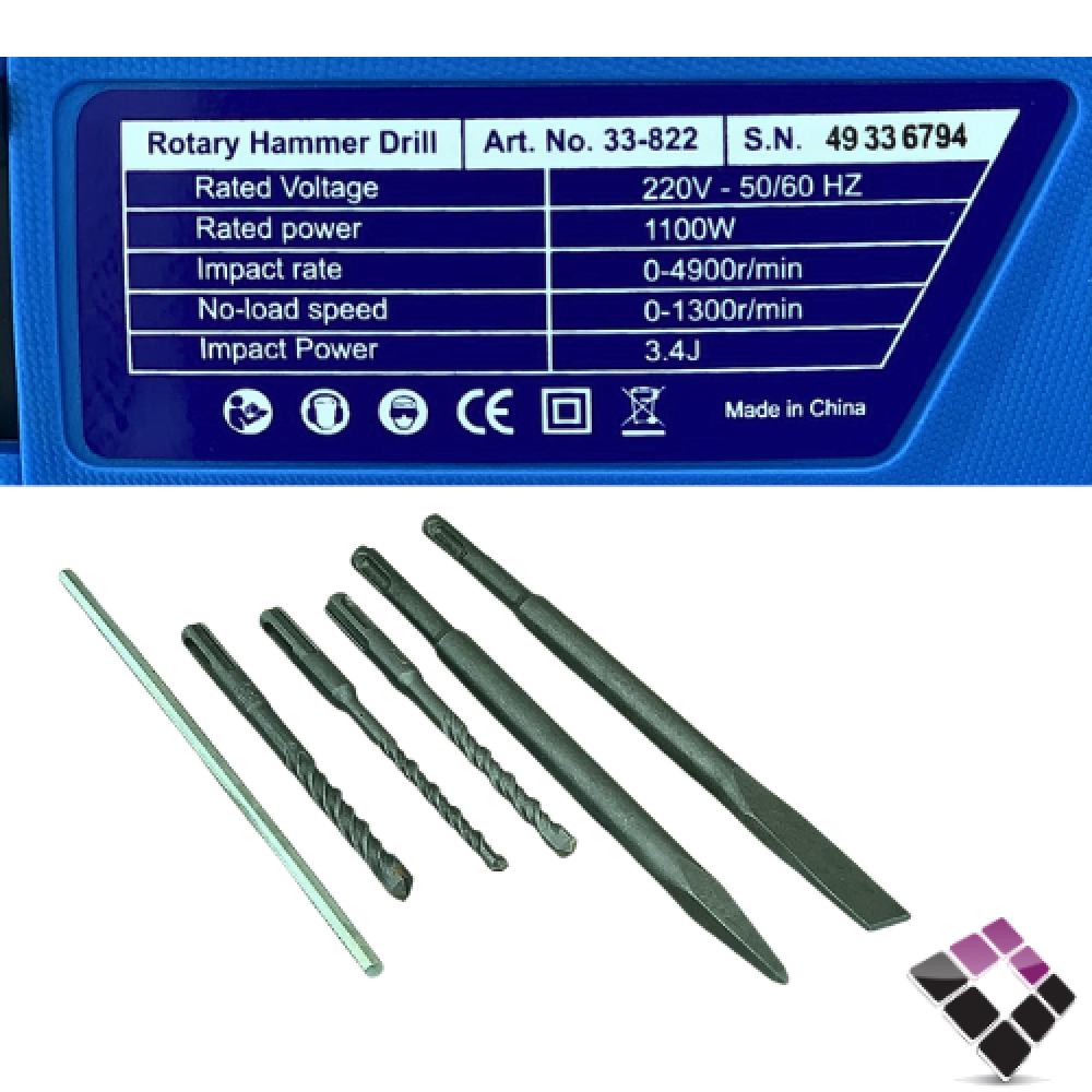 دريل هلتي ستونيك STONEC صيني 34 ملم 1100W + همر شاكوش + شنطة رقم 822-33