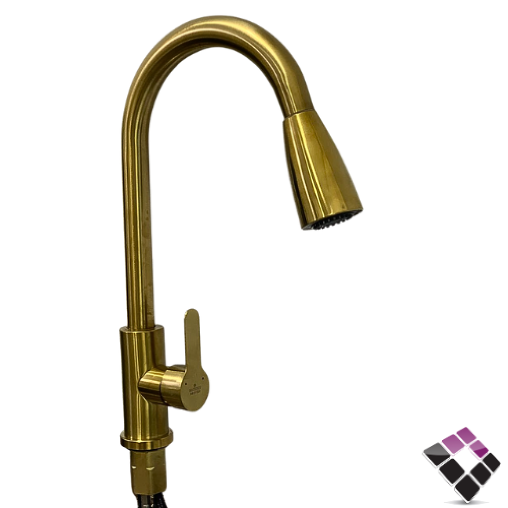خلاط مجلى واقف اتمتيك BATHROY ايطالي لون ذهبي مطفي رقبة عالية موديل برايم PRIME