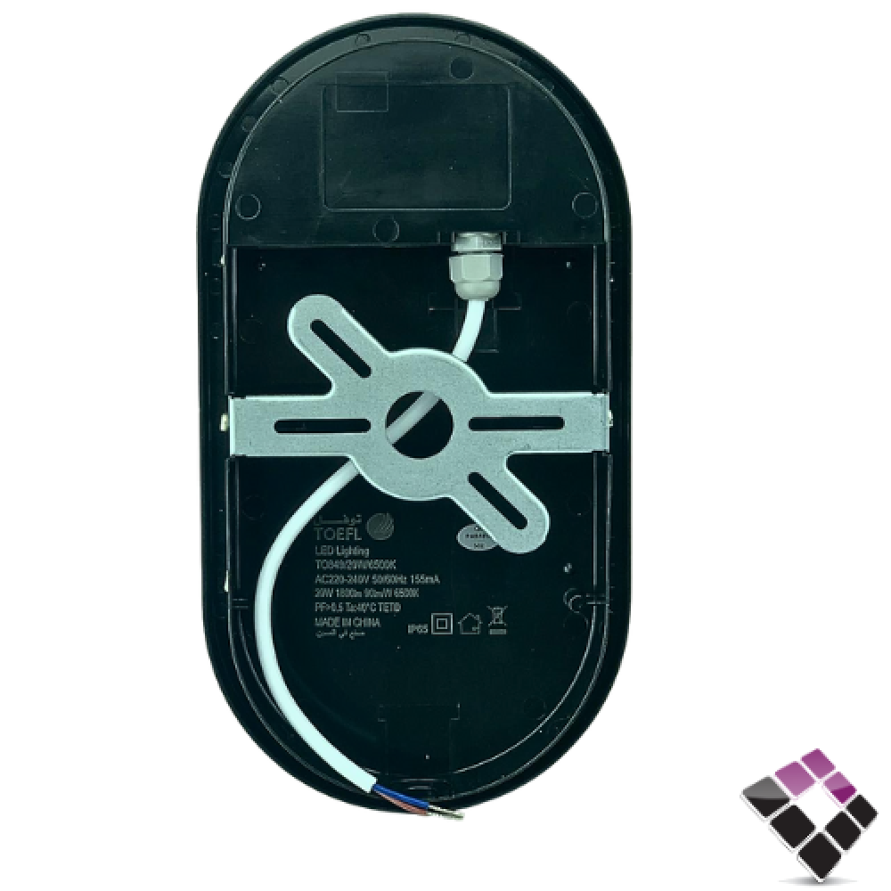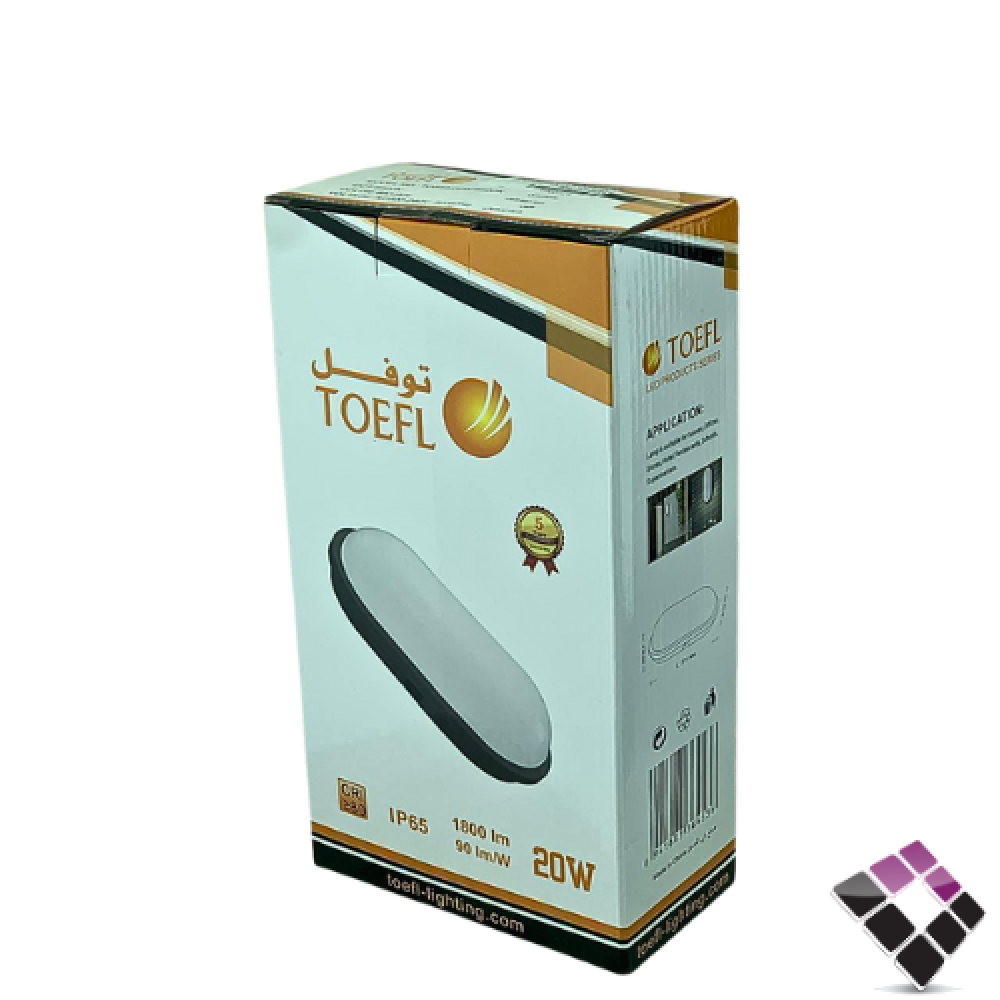 ابلك جداري LED خارجي بلاستيك توفل TOEFL بيضاوي سادة جرم أسود إضاءة 6500K أبيض 20W