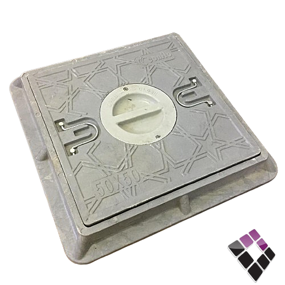 - غطاء تفتيش فيبر ثقيل + فتحة للي CONFLO صيني لون رمادي المقاس من الداخل من غير الحلق 50*50 ...رقم الصنف (34233306)