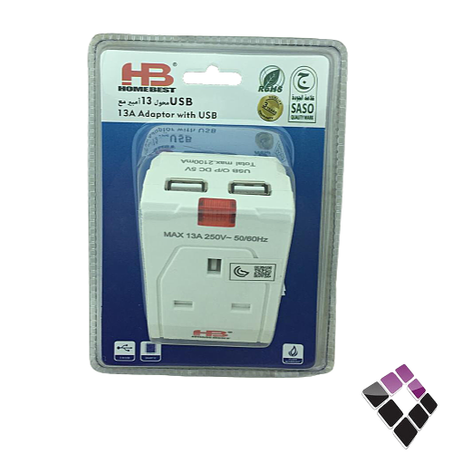 قسام مكعب موزع افياش كهرباء HB صيني مخرجين USB + مخرج 13A رقم AU010