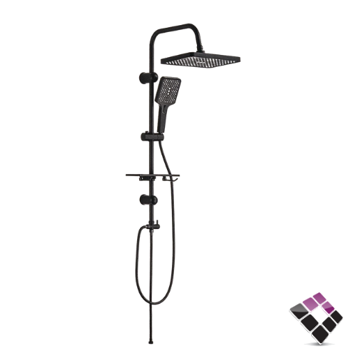 طقم شاور دش MATELDA ايطالي لون أسود عمود + طاسة مطري مربعة مع لي و سماعة رقم 0080B