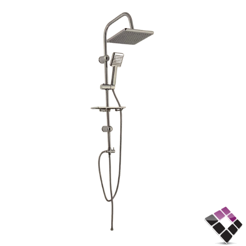 طقم شاور دش ROMATA ايطالي لون كروم عمود + طاسة مطري مربعة مع لي و سماعة رقم 001
