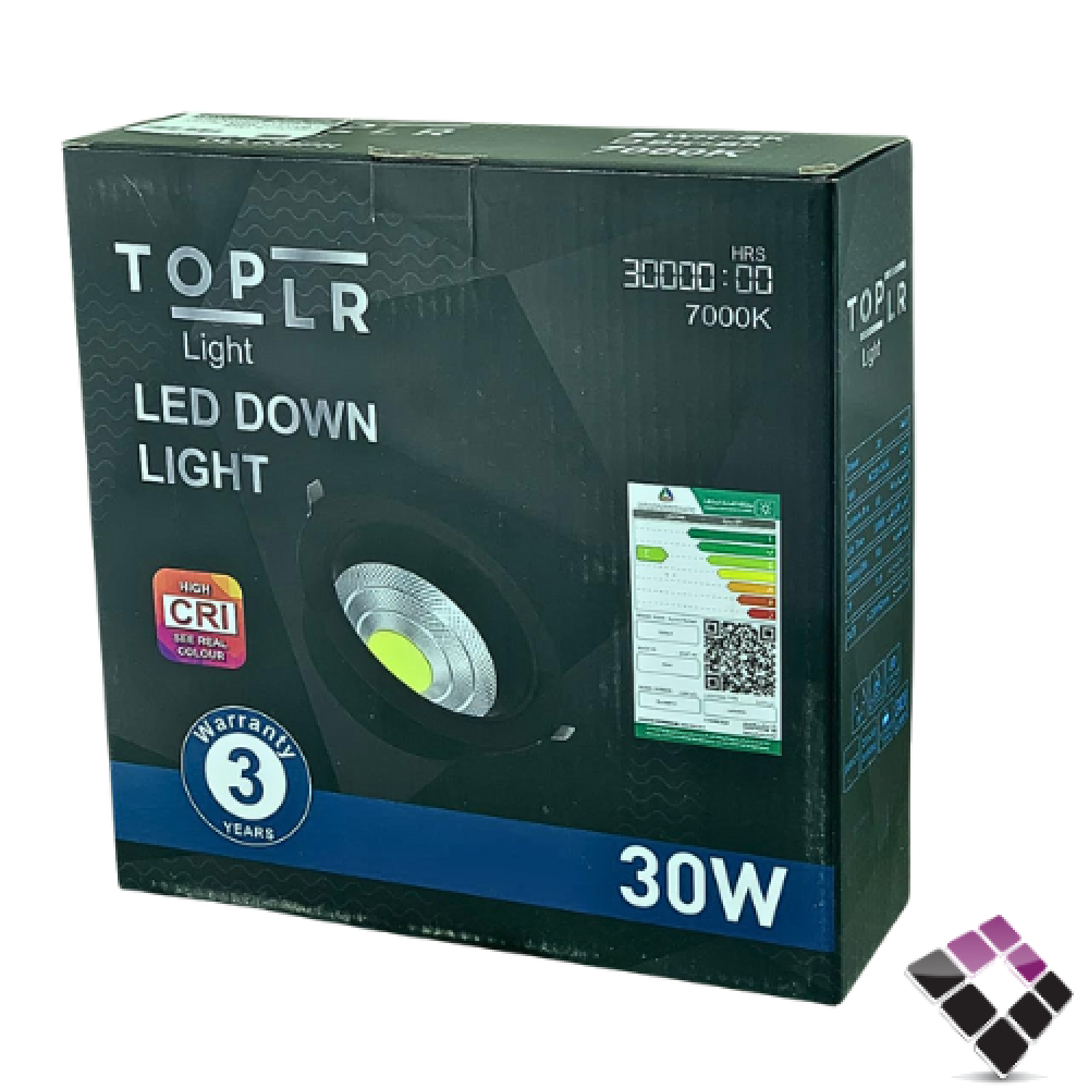 كشاف داخلي LED مانع توهج TOPLR عدسة COB إضاءة 7000K أبيض جرم أسود كامل مقاس 8"×30W