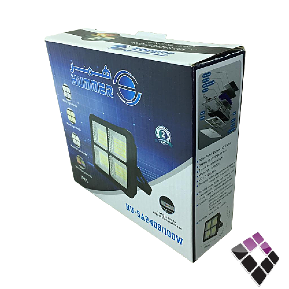 كشاف كوبس خارجي LED يعمل على الطاقة الشمسية + USB همر HUMMER إضاءة أبيض + أصفر + شمسي+فشر 100W رقم HU-SA-2409