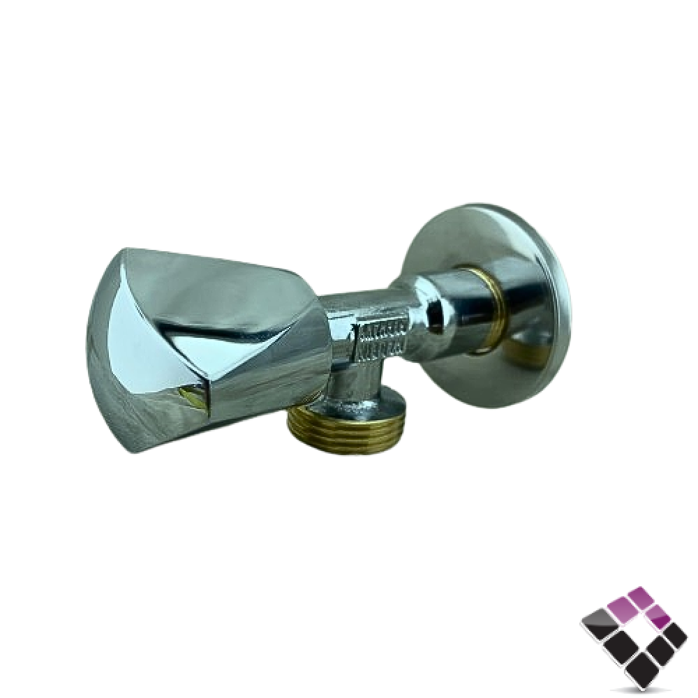 محبس زاوية طويل روكو mROCCO الماني موديل قروهي سنة نحاس لون كروم مقاس 1/2"×3/4" رقم RG-540