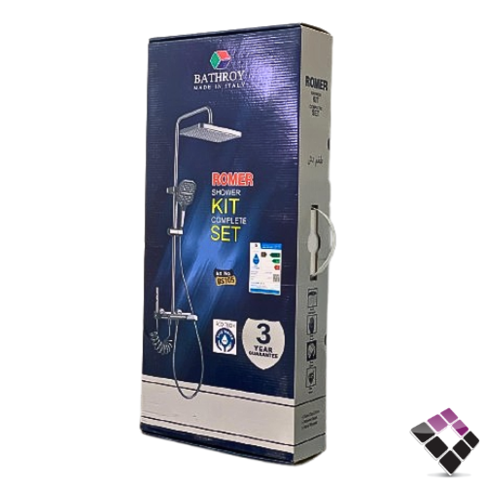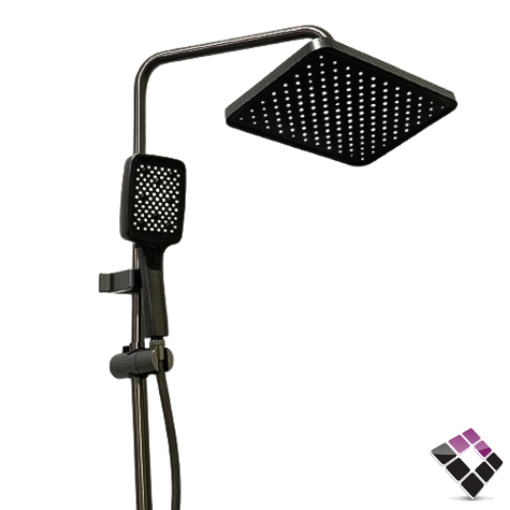 مجموعة خلاط شاور متكامل BATHROY ايطالي موديل AKNO دش و شطاف و سماعة و عمود مطري موديل بيانو لون تيتانيوم