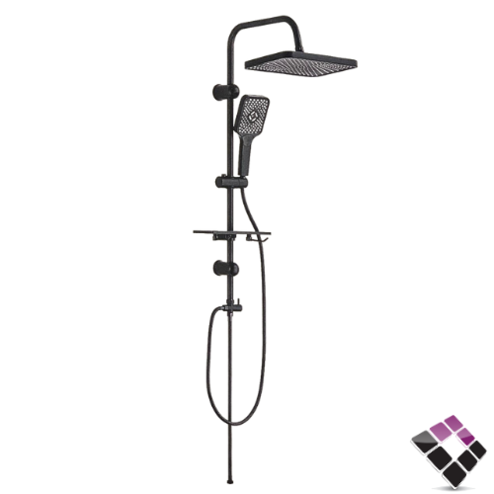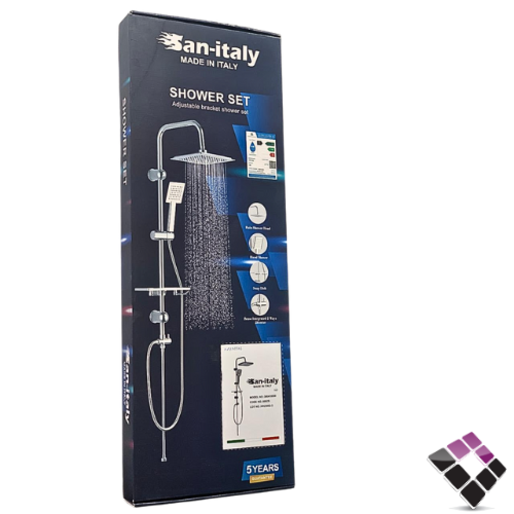 طقم شاور دش SAN ITALY ايطالي لون أسود عمود + طاسة مطري مربعة مع لي و سماعة رقم 0082B