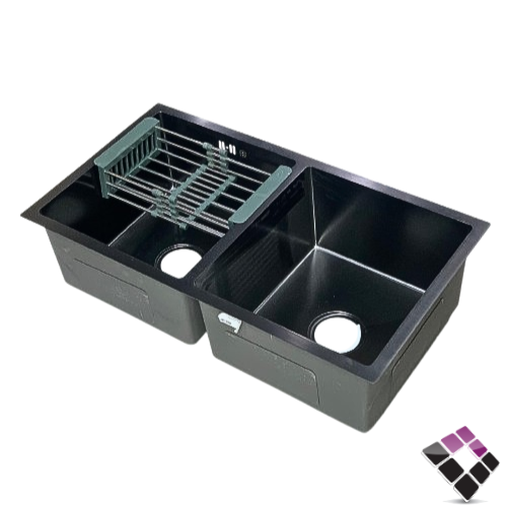 مجلى حوضين أستيل 304 سماكة 3ملم TECHNO STEEL سعودي لون أسود كامل مع الهراب مقاس 82×45 سم