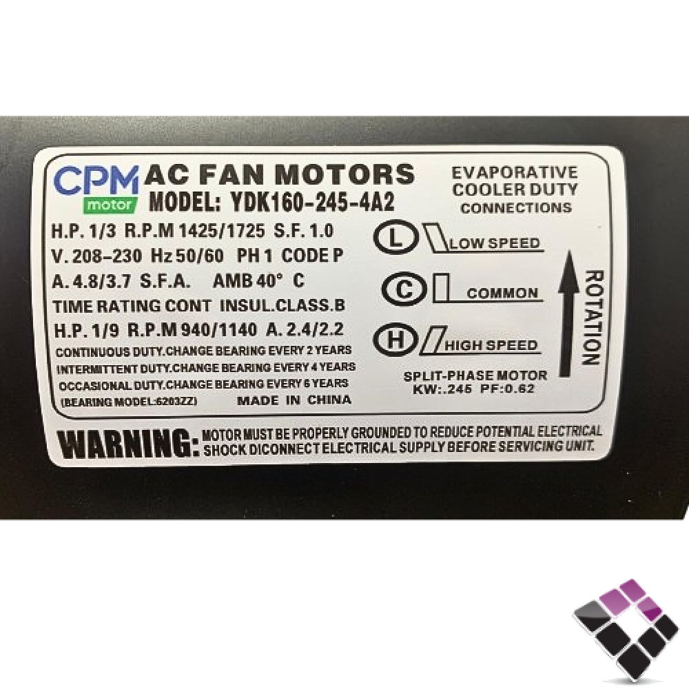 ماطور مكيف صحراوى CPM صينى 1/3 حصان رقم YDK160-245