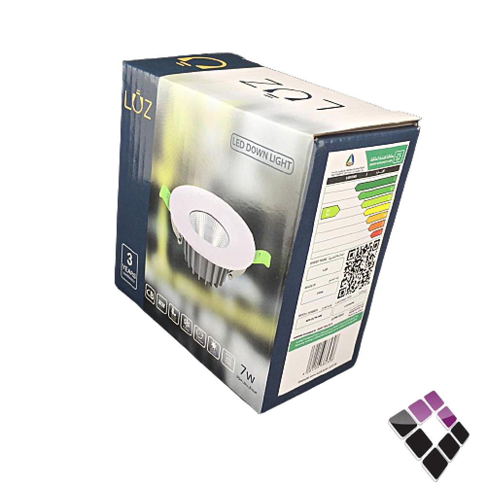 كشاف LED اسبوت داخلي عدسة COB ضاءة 4000K كريمي 2"×7سم LUZ صيني جرم أبيض ثابت 7W رقم NPV-DL7W-NW