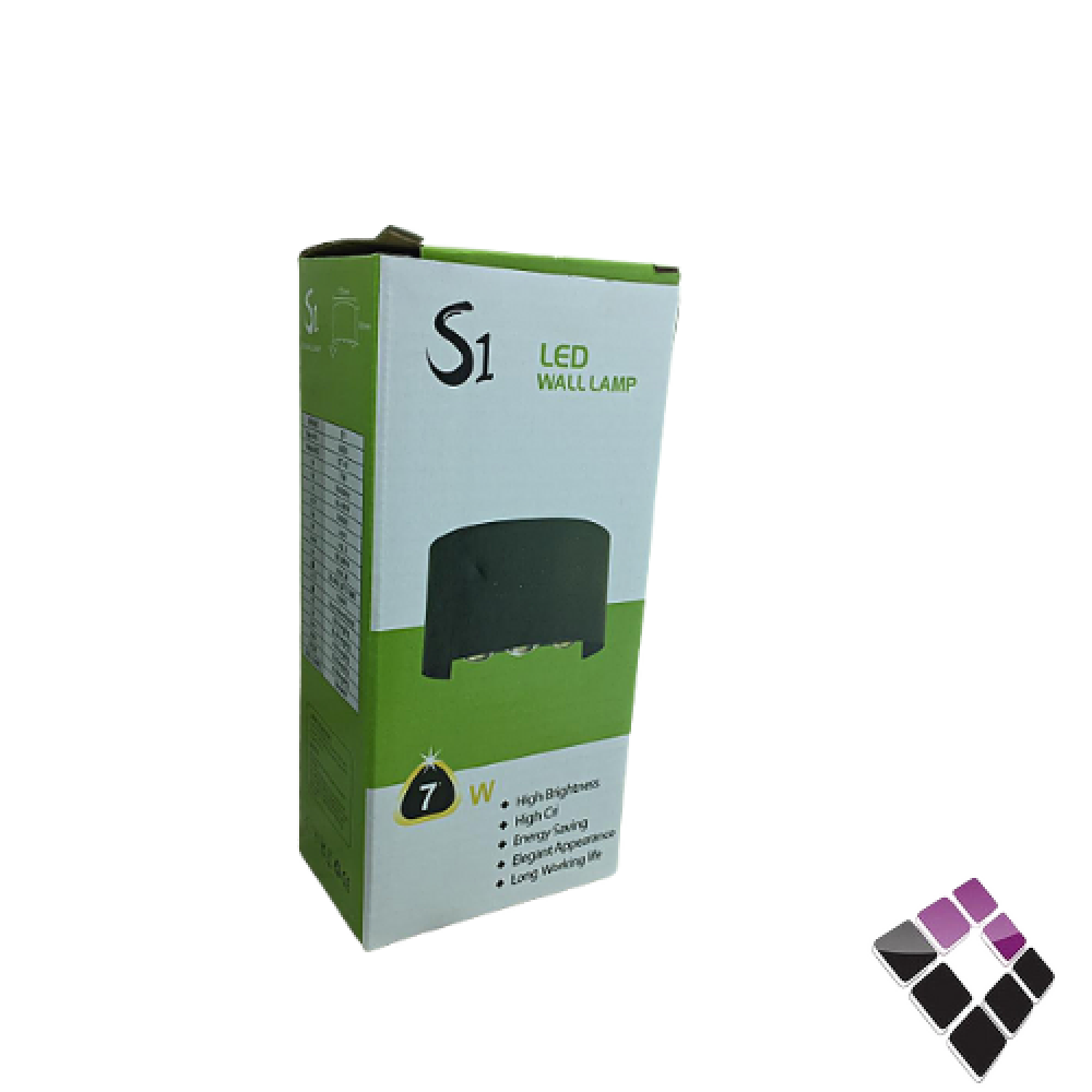 كشاف سور LED خارجي bright light جرم المنيوم لون أسود وتر بروف موديل أب + داون مستطيل مبرم إضاءة أصفر 12W رقم 4/023