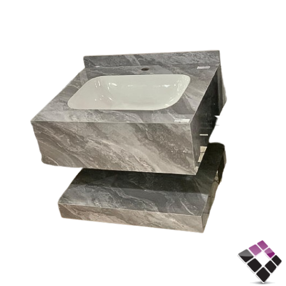مغسلة كبينة بورسلان رخامي Orient standard معلق لون رمادي غامق رخامي 60CM + مراية إضاءة LED رقم/ 12212277.60