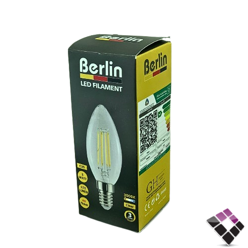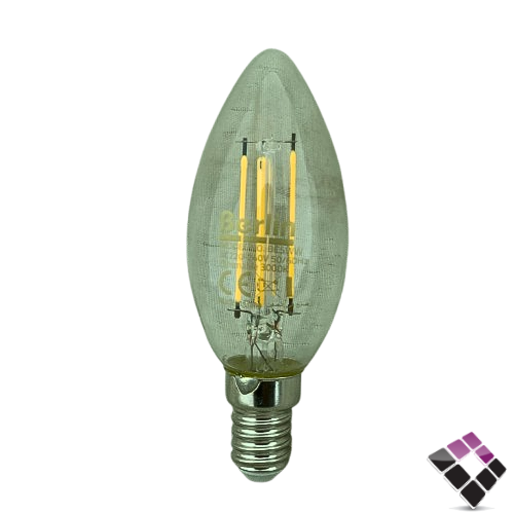 لمبة بلح LED برلين Berlin فلمنت شفاف أعواد تعمل بالدايمر بدون فليكر إضاءة أصفر 3000K سنة 5W ×E14