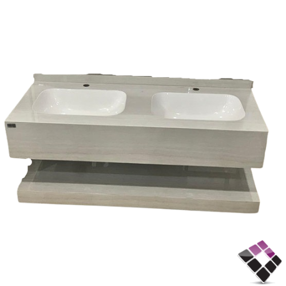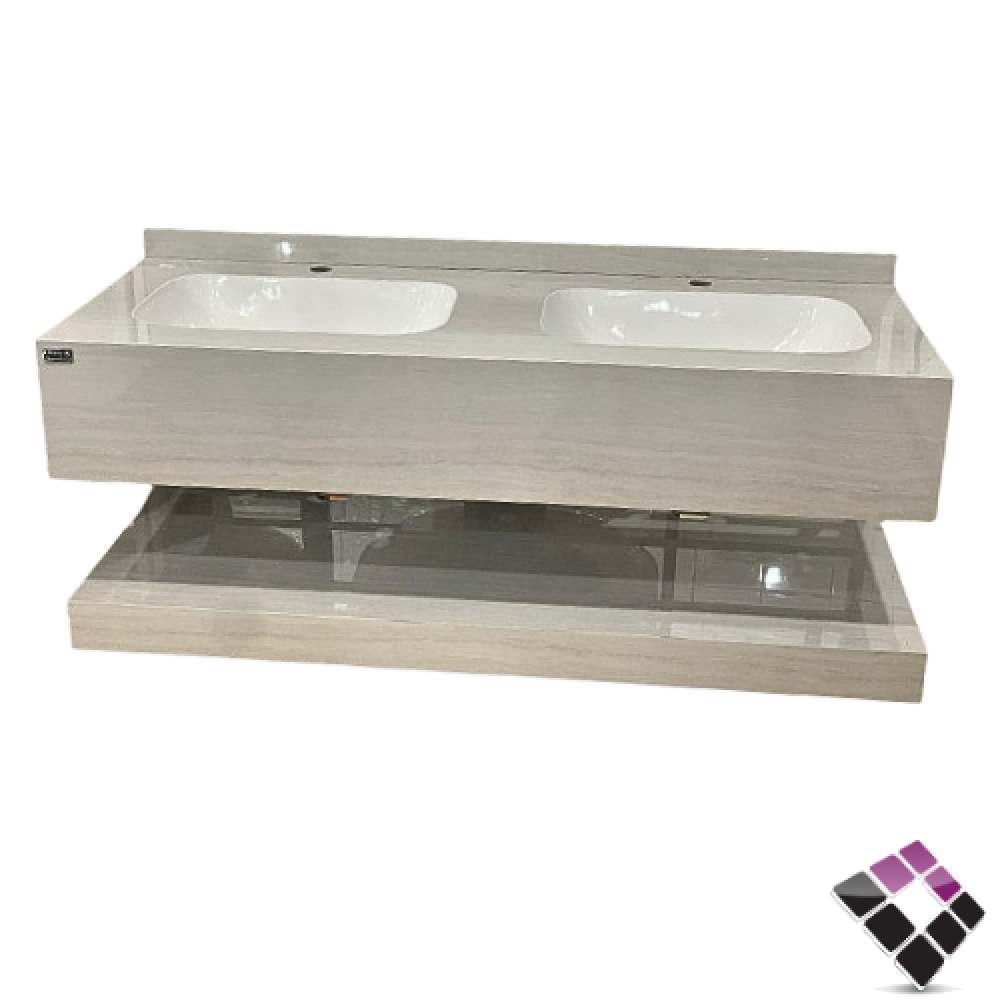 مغسلة كبينة بورسلان رخامي حوضين ليزر Orient standard معلق لون ترفنتينو رمادي 120CM + مراية إضاءة LED رقم/ 12214121