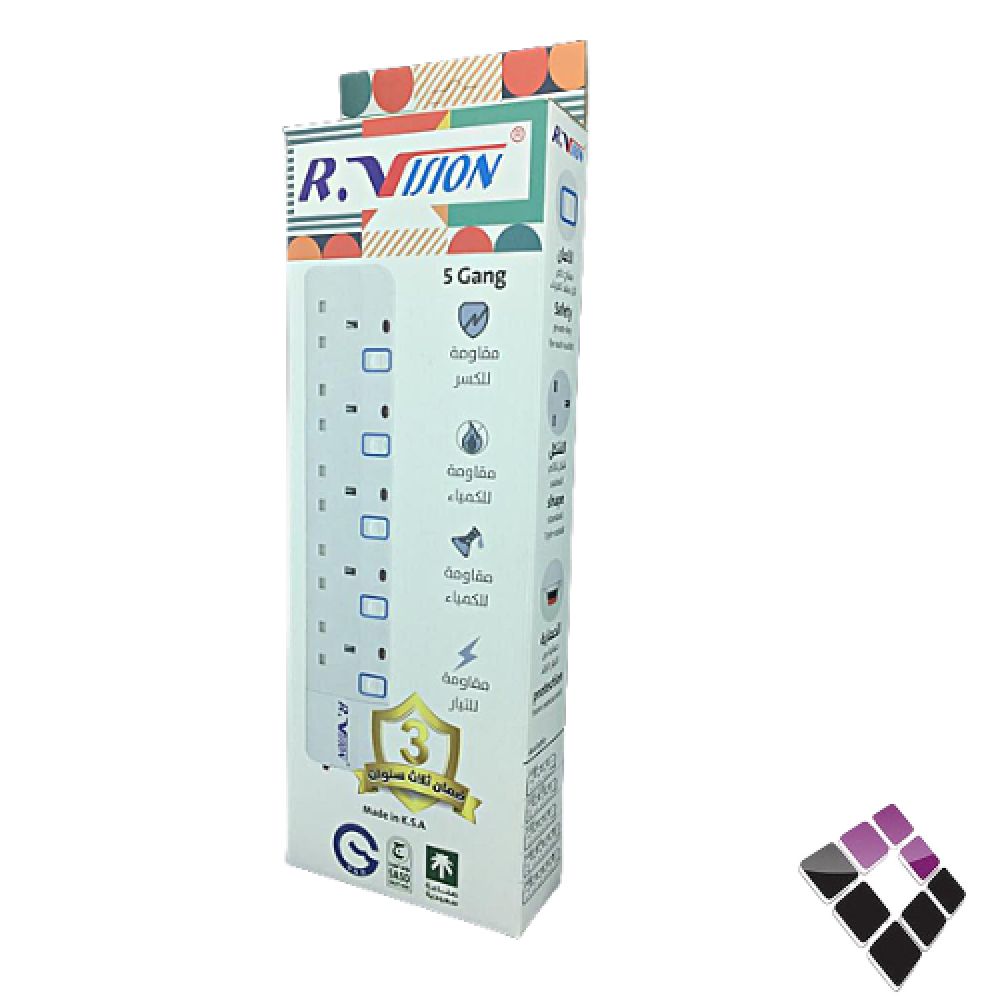 توصيلة كهرباء R-VISION الرائد العربي سعودى سلك طول 5 متر 5 مخارج فيش 13Aمع + مفتاح و لمبة + فيوز للأمان