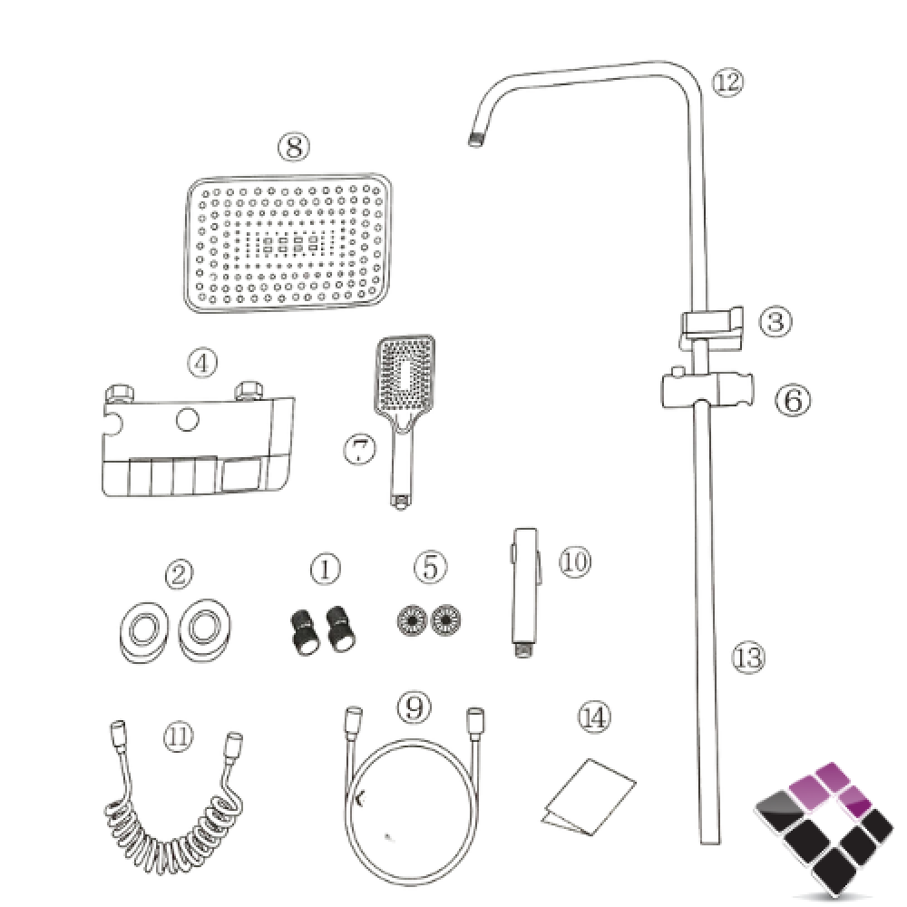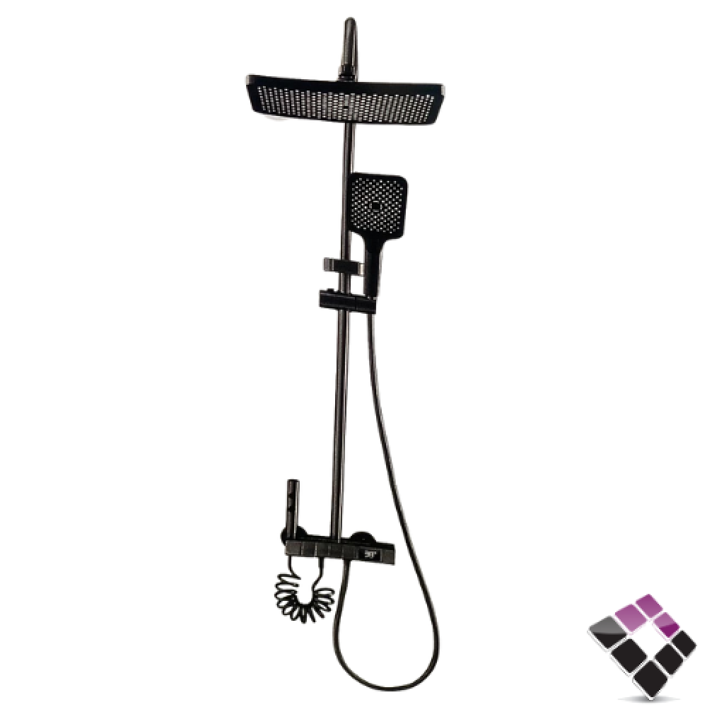 مجموعة خلاط شاور متكامل BERLI دش و شطاف و سماعة و عمود مطري موديل بيانو لون أسود