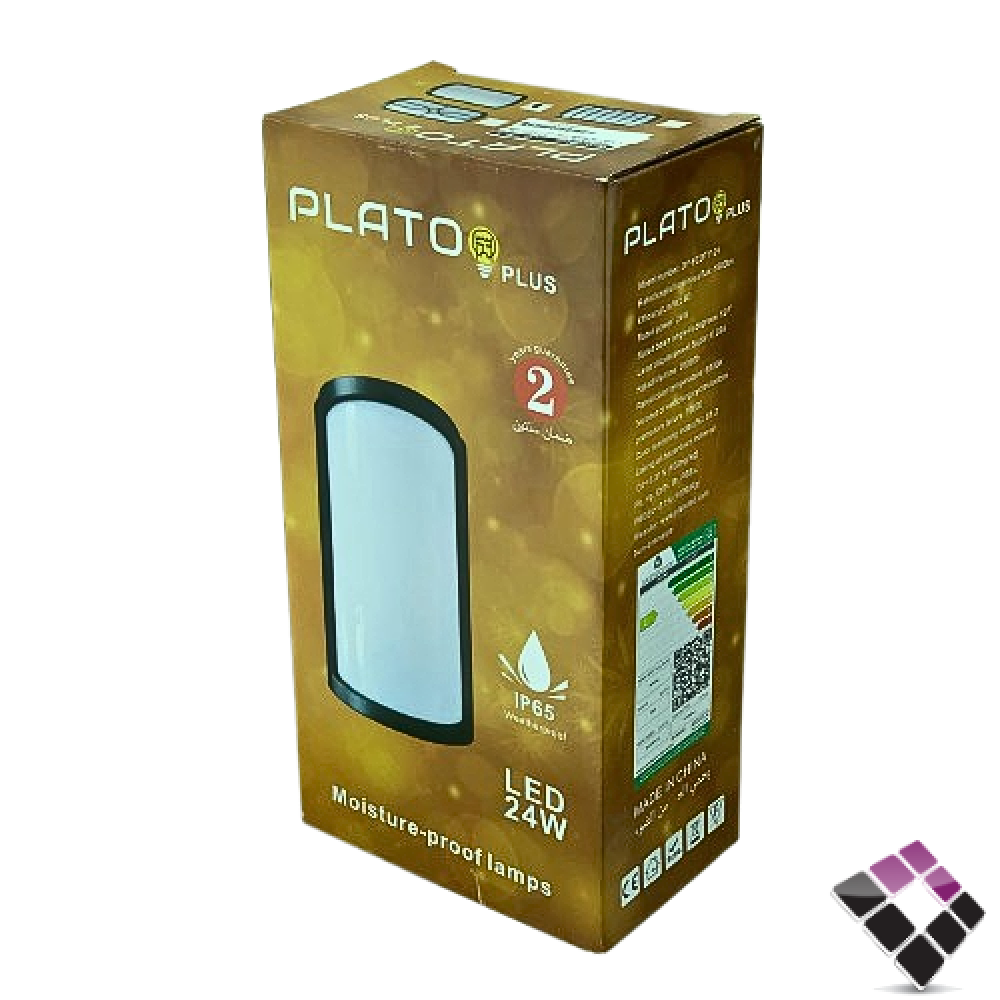 ابلك جداري LED خارجي بلاستيك PLATO-PLUS مستطيل دائري سادة جرم أسود إضاءة 3000K أصفر 24W