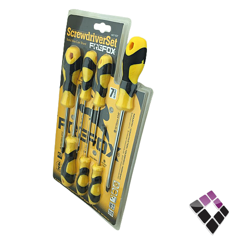 طقم مفكات FREFOX صيني راس مغناطيس مشكلة مسكة ربل لون أصفر + أسود 7قطع
