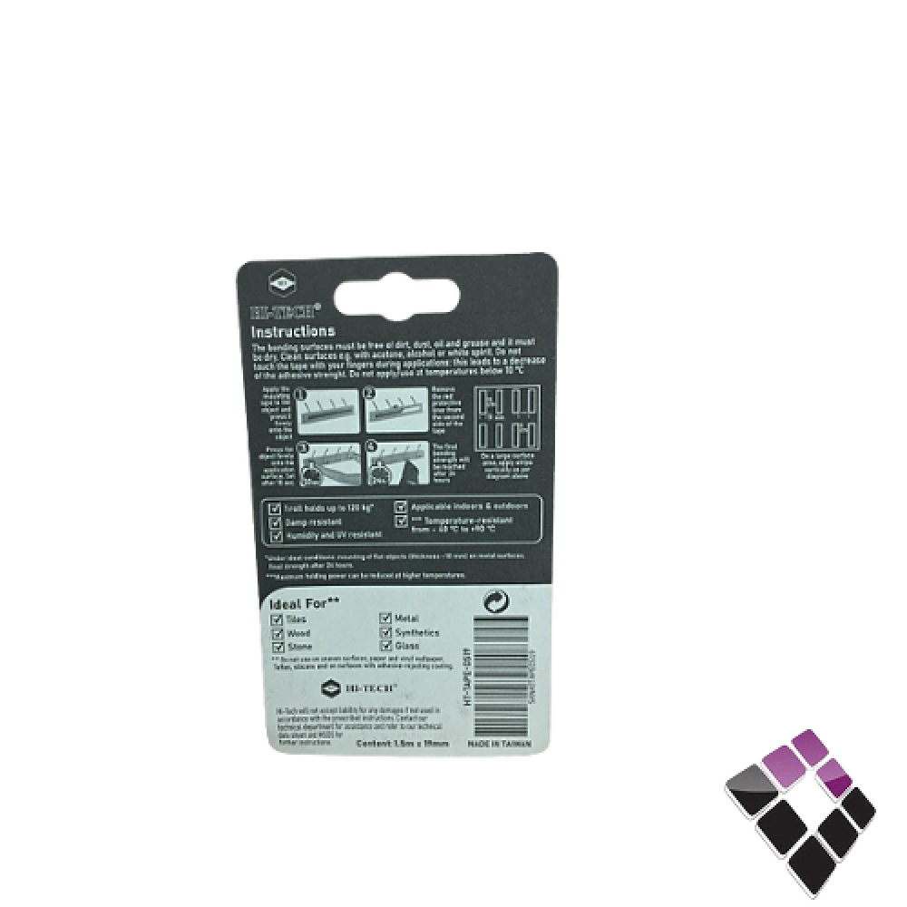 شطرطون تثبيت HI-TECH لاصق من جهتين للتثبيت على الجدران يتحمل وزن 120 كيلو لون أحمر تايواني 1.5متر.